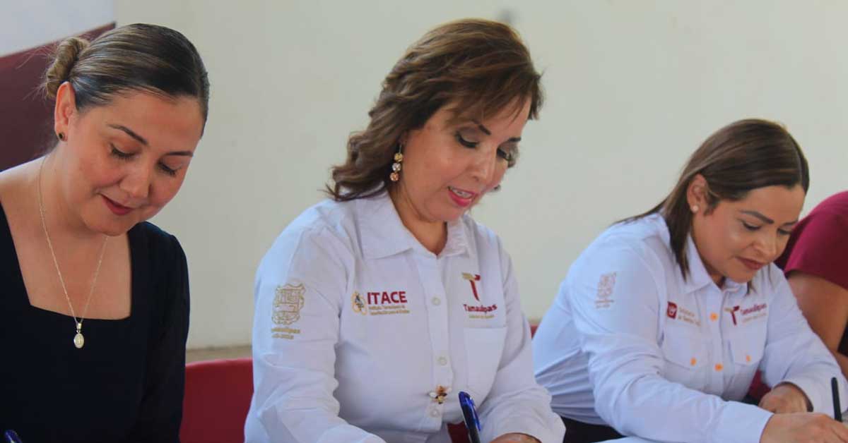 El convenio fue firmado por la directora general del ITACE, Claudia Anaya Alvarado, y la secretaria de Bienestar Social, Verónica Adriana Aguirre de Los Santos, siendo testigos de honor la titular de la Oficina de Enlace de la Secretaría de Educación en Tamaulipas, Sarahí Valdez Ramírez, y la secretaria técnica de la Secretaría de Bienestar Social, Norma Paola Mata Esparza.