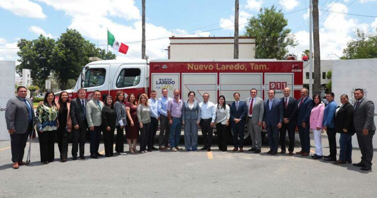 Nuevo Laredo, Tamaulipas.- Para reforzar el trabajo a favor del bienestar de los neolaredenses, empresarios locales realizaron una donación al Gobierno Municipal de una máquina apagadora que reforzará los trabajos que emprende el heróico cuerpo de bomberos para velar por la seguridad e integridad de los ciudadanos.