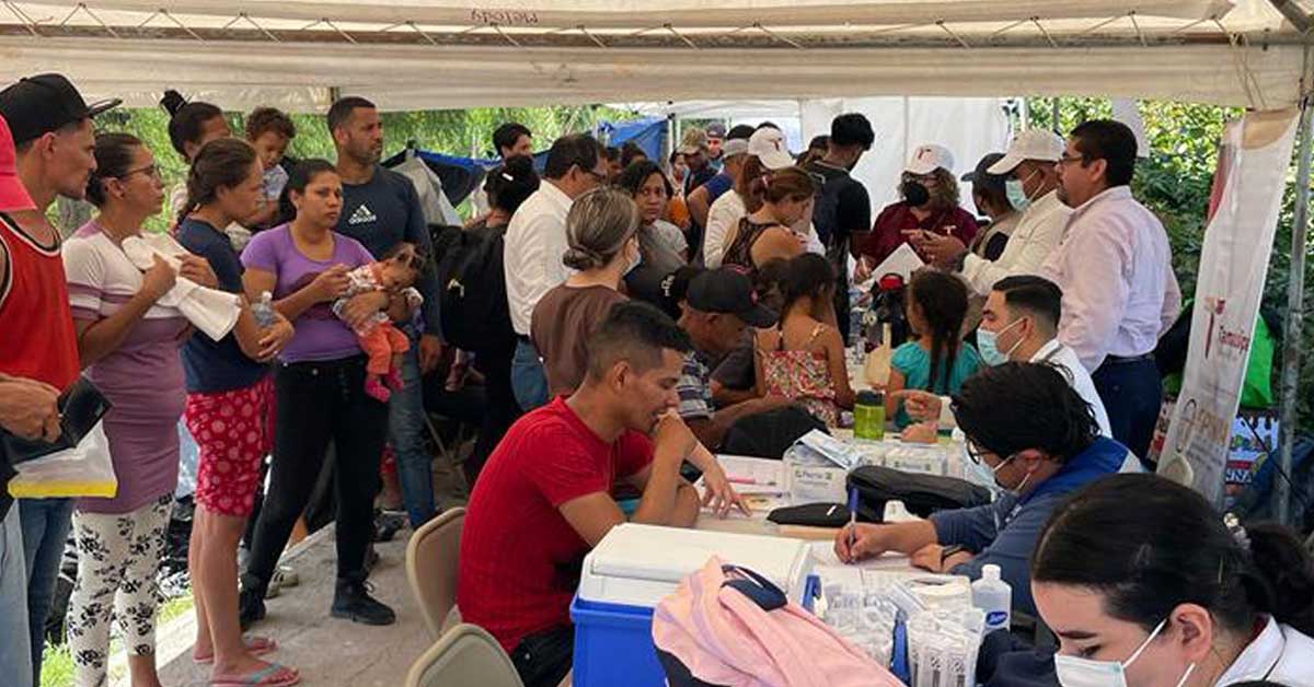 Matamoros Tamaulipas. -La Secretaría General de Gobierno a través del Instituto Tamaulipeco para los Migrantes, coordinó una jornada médica y de servicios para los migrantes que se encuentran en el bordo del Río Bravo, resultando beneficiadas más de 600 personas.
