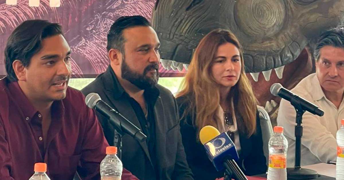 En la rueda de prensa estuvieron presentes el secretario de Turismo, Benjamín Hernández Rodríguez; el presidente Municipal, Carlos Peña Ortiz; Eucario Fabián Durán Ramírez, representante del IRCA; Karla Solís González, directora de Tierra de Dinosaurios y Antonio Morales Martínez, productor ejecutivo de la gira Tierra de Dinosaurios.