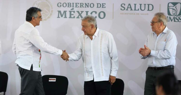 Acompañaron al presidente en este evento: Gisela Lara Saldaña, directora general de los Servicios de Salud del IMSS- Bienestar; Joaquín Juárez Durán, director del Hospital General «Dr. Carlos Canseco», el secretario de Salud del estado, Vicente Joel Hernández Navarro y el director de la COFEPRIS, Alejandro Svarch Pérez.