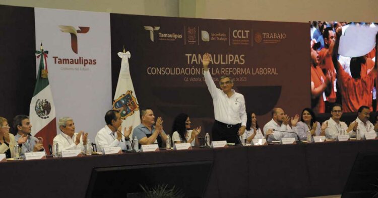 «Justicia laboral con el abatimiento de rezago en las Juntas de Conciliación y Arbitraje, ya que se ha pasado de 26 mil 681 a 17 mil 959 asuntos; Conciliación laboral en la cual de 8 mil 275 asuntos de conciliación se han celebrado 6 mil 870 convenios, mientras que, en el caso de los empleos en Tamaulipas, el número de empleos formales asciende a 697 mil 273 registrados ante el Instituto Mexicano del Seguro Social”.