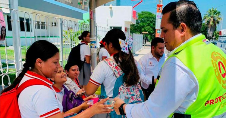 Esta actividad forma parte de los trabajos que se realizan dentro de la «Brigada de Hidratación» que implementa Protección Civil Tamaulipas con apoyo del secretario general de Gobierno, Héctor Joel Villegas González, a favor de la ciudadanía para evitar golpes de calor.