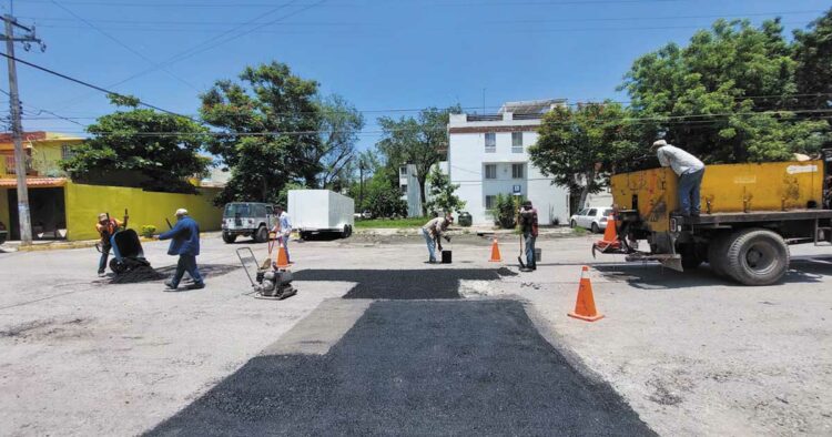 Cd. Victoria, Tamps.. – El Gobierno Municipal, que preside el alcalde Eduardo Gattás Báez, mantiene el programa emergente de bacheo para restaurar el asfalto dañado por el rodamiento vehicular en calles y avenidas de la ciudad.