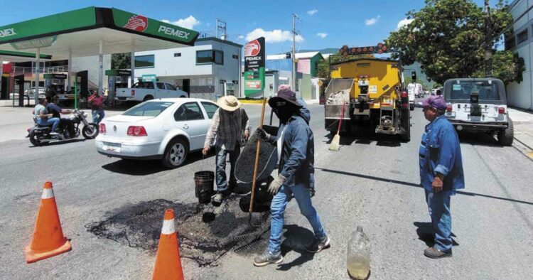 Atendiendo la disposición de la autoridad de salud del Estado, para evitar exponer al personal de campo a las altas temperaturas, desplegó a temprana hora cuadrillas de bacheo en calles aledañas a la avenida Berriozábal, Centro Universitario y colonias Hacienda del Santuario, Las Flores, Del Periodista, Emilio Portes Gil y Residencial Selectas.