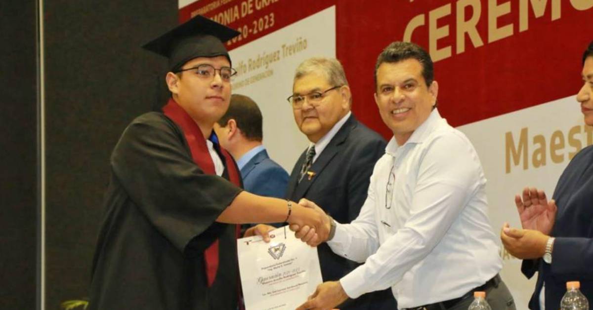 Cd. Victoria, Tamps. – A invitación de personal directivo y comunidad escolar de la Preparatoria Federalizada No. 1 “Ing. Marte R. Gómez”, el alcalde de Victoria Eduardo Gattás Báez asistió a la ceremonia de graduación de alumnos de la generación 2020-2023.