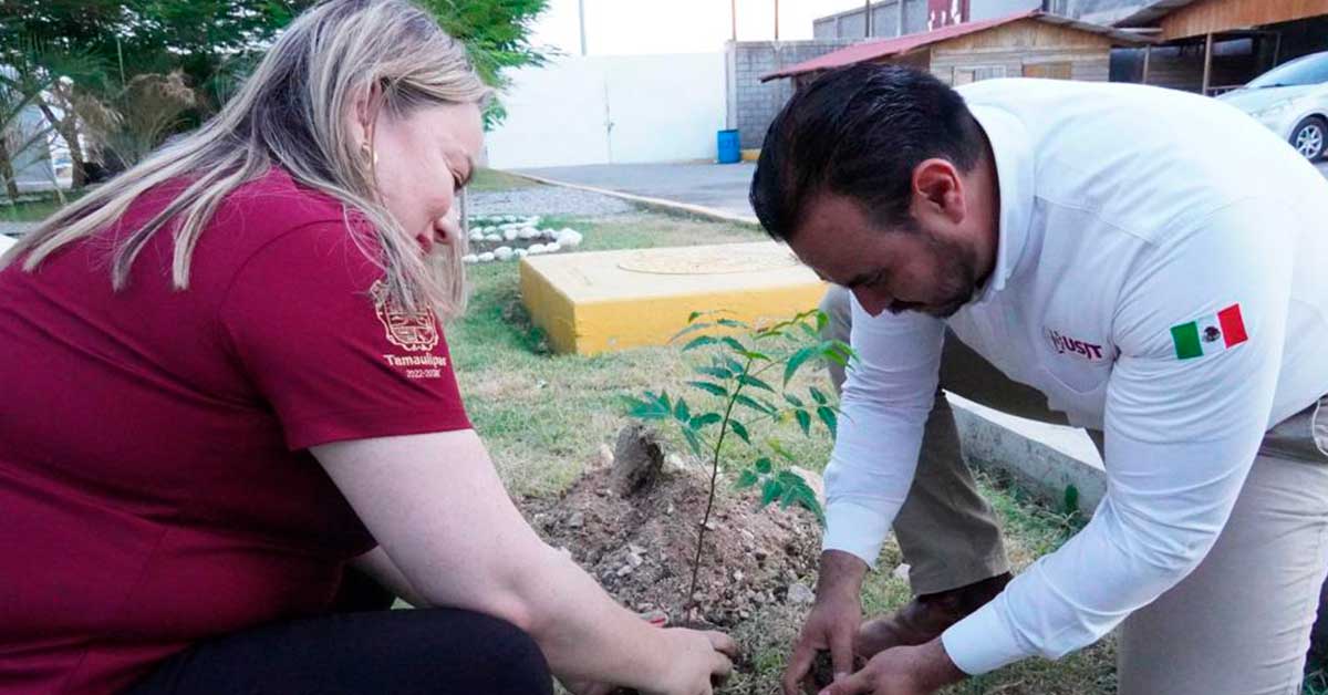 Ciudad Victoria, Tamaulipas.- En seguimiento a las acciones de reforestación iniciadas por la actual administración rectoral, representantes del programa de Educación Ambiental de la Secretaría de Educación (SET) y autoridades de la Universidad de Seguridad y Justicia (USJT), recorrieron las áreas donde comenzó la reforestación.