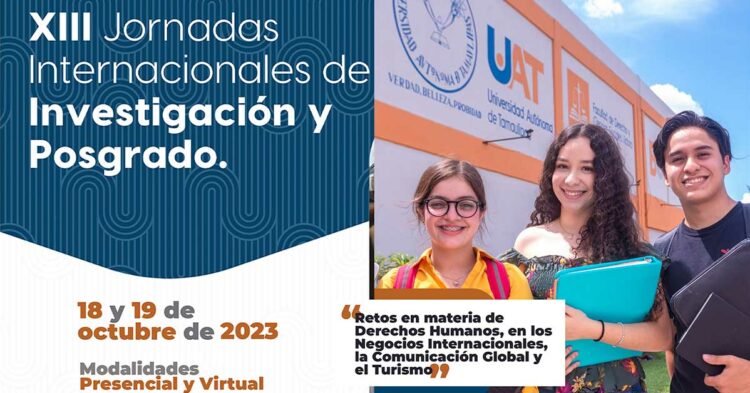 La Facultad de Derecho y Ciencias Sociales Victoria (FDCSV) de la Universidad Autónoma de Tamaulipas (UAT) invita a participar en las XIII Jornadas Nacionales de Investigación y Posgrado denominadas «Retos en materia de derechos humanos en los negocios internacionales, comunicación global y turismo», que se realizarán de manera presencial y virtual los días 18 y 19 de octubre de 2023.