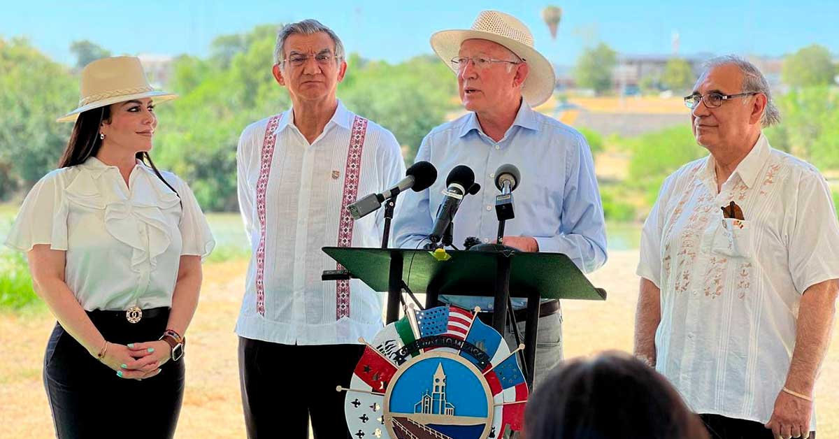 En una rueda de prensa, en las márgenes del río Bravo, en el lado americano y luego de una reunión privada y de realizar un recorrido por el sendero Las Palmas, abajo del Puente Internacional 2, para conocer el proyecto del Parque Binacional, el embajador de los Estados Unidos en México y el gobernador de Tamaulipas coincidieron en la importancia de impulsar de manera conjunta lan relación entre México y Estados Unidos.
