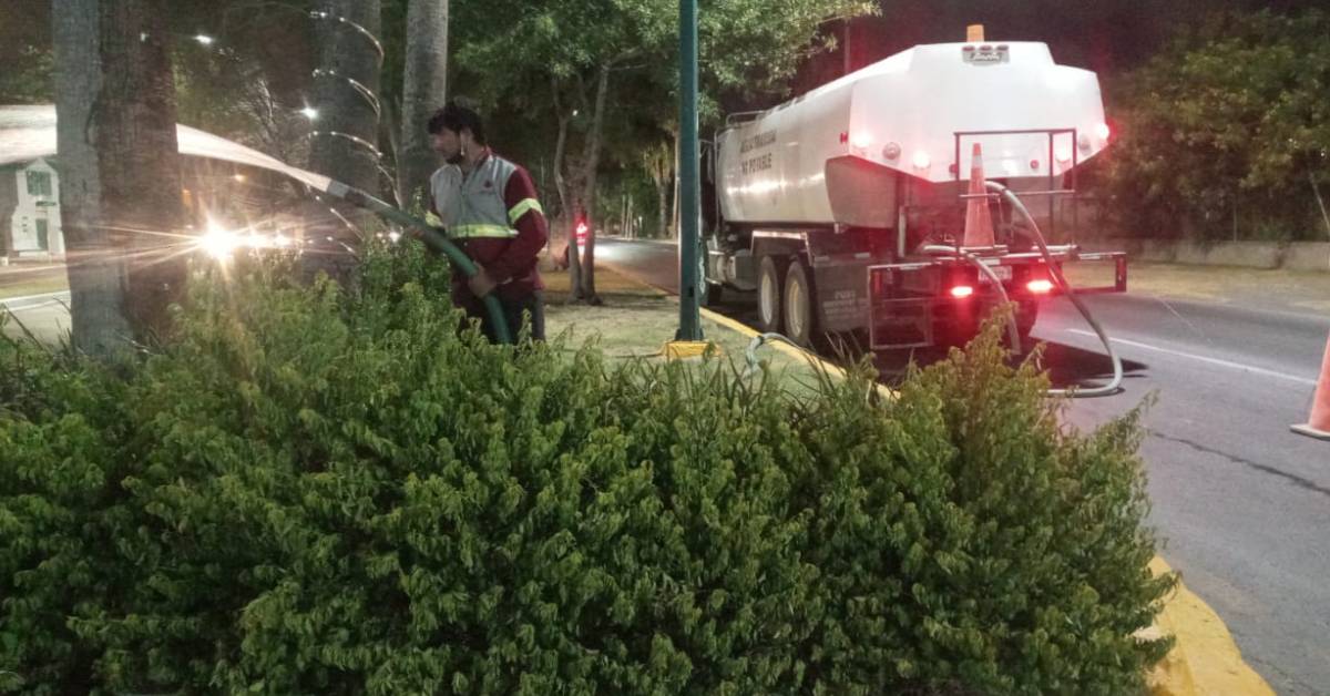 El director de Parques y Jardínes, José Valdemar Sandoval Ortega, indicó que por las altas temperaturas, el personal encargado del riego inicia sus actividades a partir de las 6:00 AM de lunes a viernes.