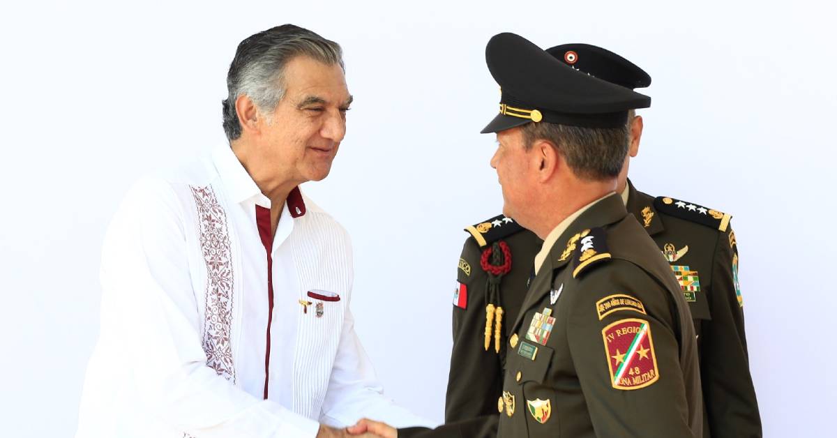 Ciudad Victoria, Tamaulipas.- El gobernador Américo Villarreal Anaya asistió a la toma de posesión y protesta de bandera del general de brigada Diplomado de Estado Mayor, Julio César Islas Sánchez como nuevo comandante de la 48/a Zona Militar, la cual cubre 28 municipios de Tamaulipas.