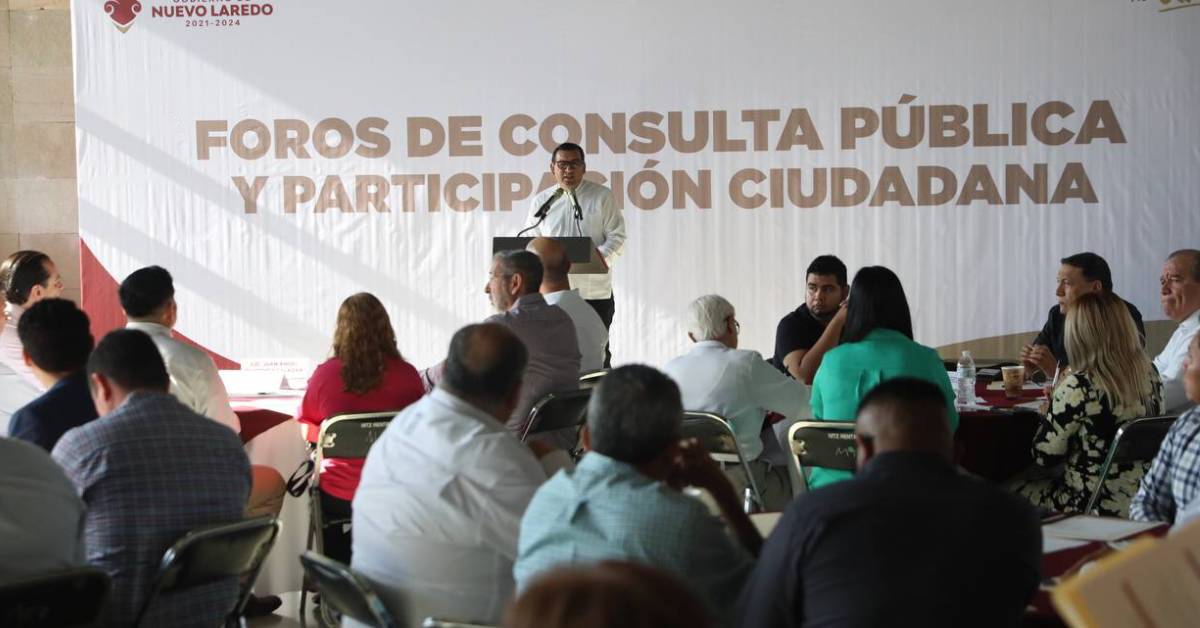 Nuevo Laredo, Tamaulipas.- Este jueves iniciaron los Foros de Participación Ciudadana para recibir propuestas respecto del diseño, implementación y evaluación de políticas públicas municipales que fortalezcan el Plan Municipal de Desarrollo 2021-2024 (PDM).