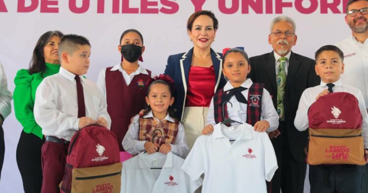 Nuevo Laredo, Tamaulipas.- El Gobierno de Nuevo Laredo realizó la entrega de uniformes, mochilas y útiles escolares a los alumnos de preescolar, primaria y secundaria para cumplir así con el compromiso de que los estudiantes contaran con este apoyo desde el primer día de clases.