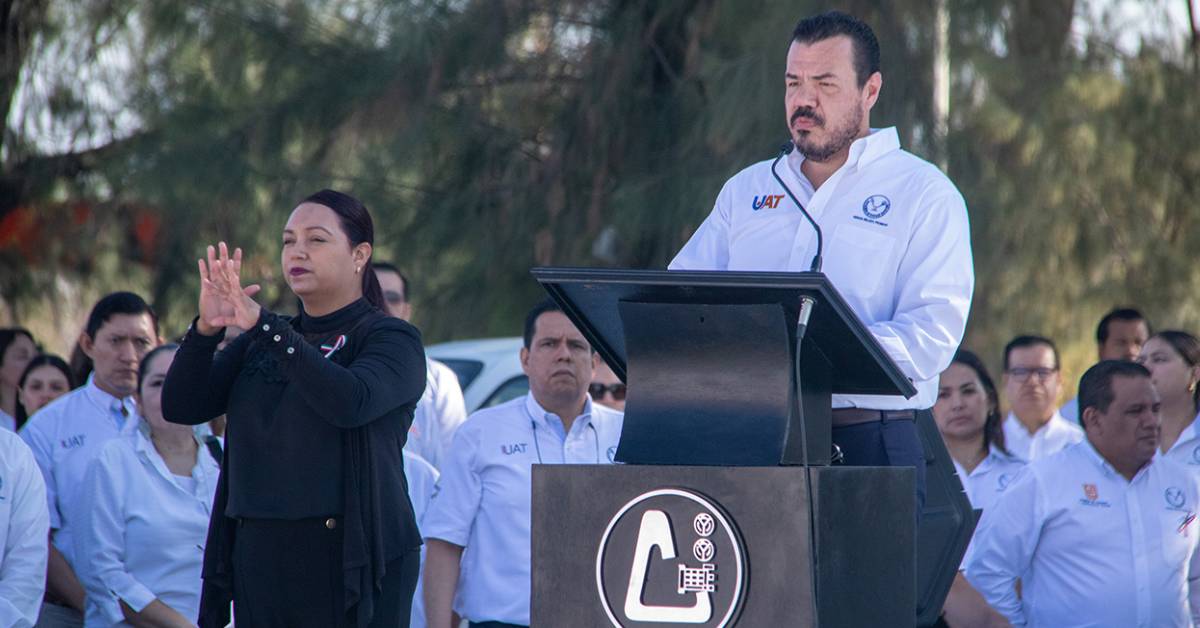 En su mensaje a la comunidad universitaria, el rector destacó la importancia de preservar el respeto a los símbolos patrios, y reiteró el compromiso de la UAT por engrandecer a la nación a través de la educación.