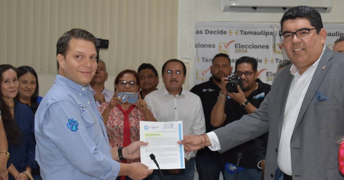 Para llevar a cabo la entrega de la documentación, acudieron, el Presidente del Comité Directivo Estatal, Luis René Cantú Galván, acompañado del Senador de la República por Tamaulipas, Ismael García Cabeza de Vaca, el representante propietario ante el Consejo General del IETAM, Luis Tomás Vanoye Carmona, los dirigentes de los comités directivos municipales, así como diversa militancia de dicho instituto político.