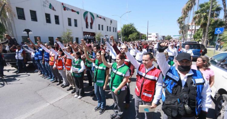 Nuevo Laredo, Tamaulipas.- Como medio de prevención y un ensayo para actuar correctamente ante algún siniestro, el Gobierno Municipal por medio de la Dirección de Protección Civil y Bomberos (PCYB), se sumó al Segundo Simulacro Nacional 2023 en el que, por parte de Nuevo Laredo, participaron alrededor de 700 personas entre empleados municipales y ciudadanos.