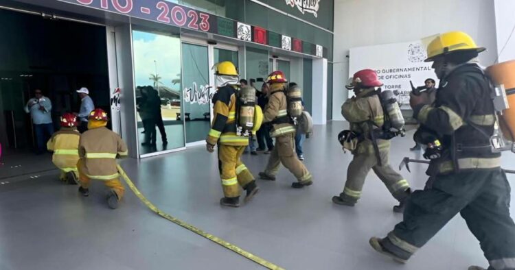 Ciudad Victoria, Tamaulipas.- En el marco de la conmemoración del Día Nacional de Protección Civil, la Secretaría de Administración llevó a cabo un simulacro de incendio en la Torre Bicentenario de Ciudad Victoria, Tamaulipas.
