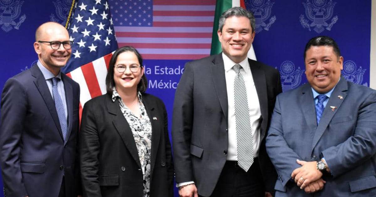 La reunión de trabajo se llevó a cabo con la presencia del Ministro Consejero para Asuntos Públicos de la Embajada de Estados Unidos, Mr. Silvio González, y con la Secretaria de Educación de Tamaulipas, Lucía Aimé Castillo Pastor, así como funcionarios de las áreas de inglés, educación, vinculación y asuntos públicos.