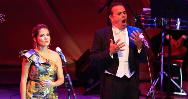 El gobernador Américo Villarreal Anaya y la presidenta del Sistema DIF Tamaulipas, María Santiago de Villarreal, estuvieron en el teatro, donde disfrutaron junto a los demás asistentes del recital brindado por el tenor mexicano, quien acompañado por la soprano Leticia de Altamirano, interpretaron renombradas piezas musicales.