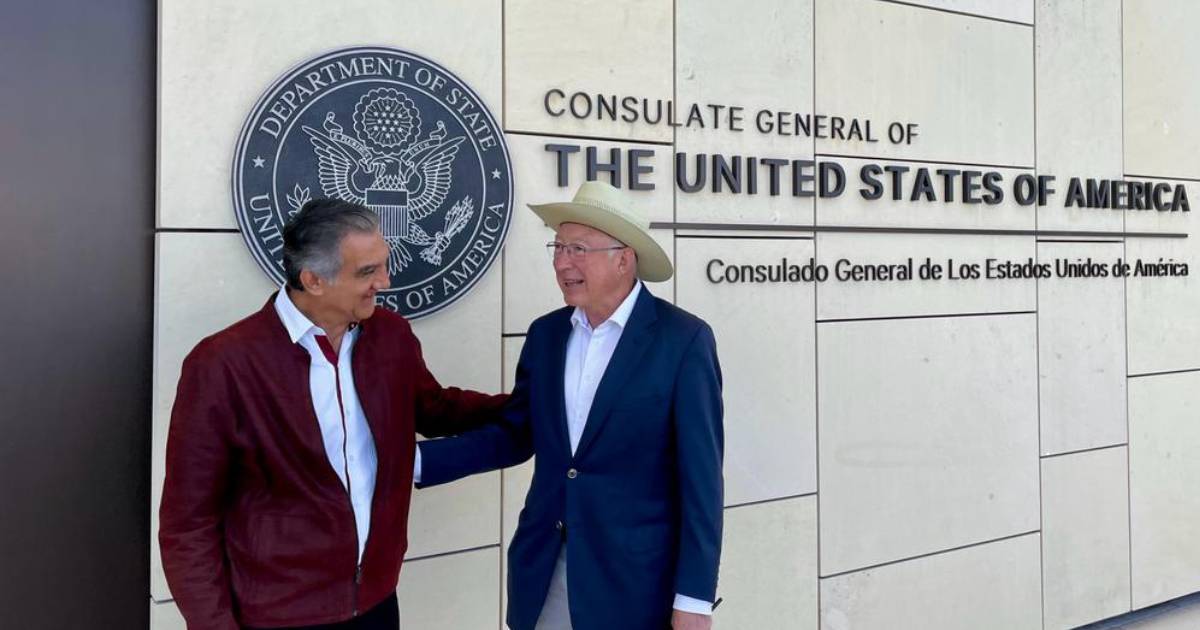 Al reunirse esta mañana en las oficinas del Consulado de Estados Unidos en Matamoros y acompañado por la cónsul en esta ciudad, Brianna Powers, el embajador Ken Salazar reconoció el trabajo del gobernador Villarreal Anaya e incluso destacó la celebración del festival cultural que se lleva a cabo en el Estado, lo cual consideró como una «señal positiva y muy buena».