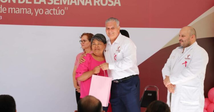 Ciudad Victoria, Tamaulipas.- En el marco conmemorativo del “Día Mundial contra el Cáncer de Mama”, el secretario de Salud, Vicente Joel Hernández Navarro, realizó la entrega de seis prótesis mamarias durante la inauguración de la “Semana Rosa 2023” que del 16 al 20 de octubre, se lleva a cabo en el Centro Oncológico de esta ciudad capital.