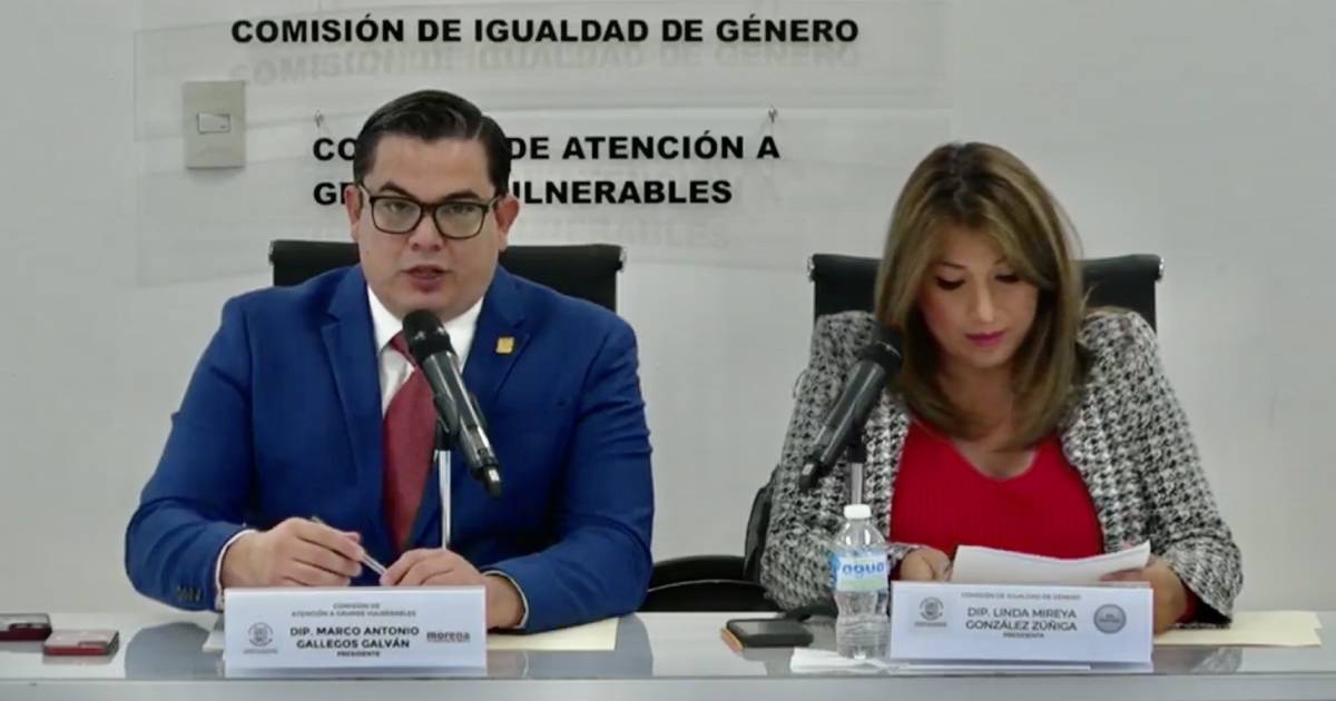 Ciudad Victoria, Tamaulipas.- El diputado de MORENA, Marco Antonio Gallegos Galván, presidió en el Congreso de Tamaulipas, la reunión de trabajo de las Comisiones Unidas, de Atención a Grupos Vulnerables, y de Igualdad de Género, en la que se aprobó una iniciativa que busca brindar una vejez digna a las personas adultas mayores.