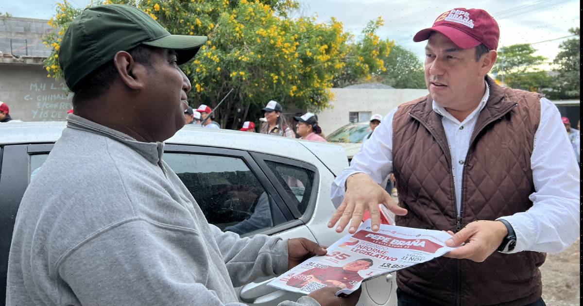 Ciudad Victoria, Tamaulipas.- El diputado local, Pepe Braña Mojica, fue recibido este día por los habitantes de la colonia Azteca, a quienes entregó casa por casa, un ejemplar del periódico que publicó su Segundo Informe de Labor Legislativa.