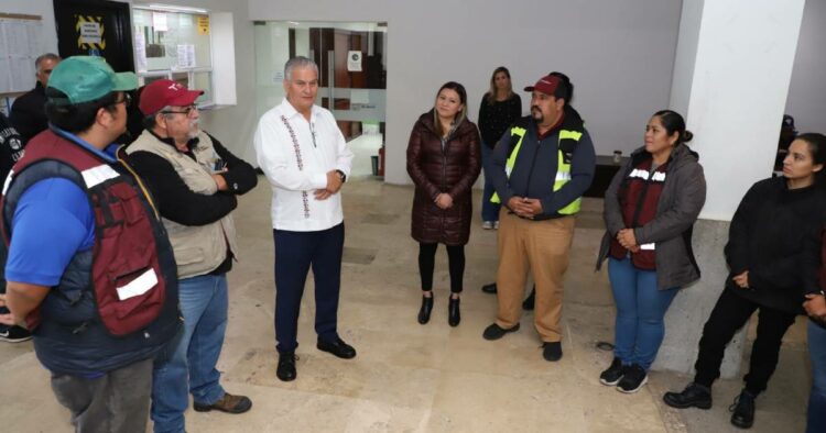 Acompañado del director del Centro Regulador de Urgencias Médicas (CRUM), Carlos Arturo González Castro y la directora del Primer Nivel de Atención, Brenda Plata Flores, el secretario de Salud, reconoció las labores de los 15 trabajadores que se desplazaron a la zona afectada por este fenómeno natural.