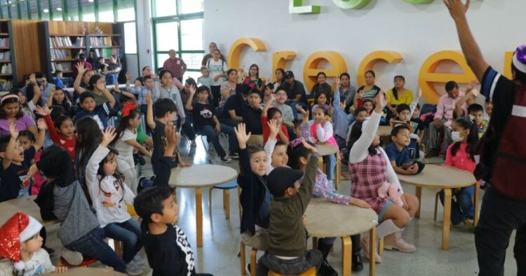En el transcurso del evento los niños escucharon cuentos de navidad sobre Rodolfo el Reno y el Pino Navidad en el área infantil, además de crear un muñeco de nieve con papel y colores.