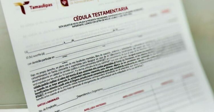 Ciudad Victoria, Tamaulipas.- El Instituto de Previsión y Seguridad Social del Estado de Tamaulipas (IPSSET), invita a los servidores públicos de confianza, extraordinarios, y sindicalizados a tramitar su Cédula Testamentaria, con el objetivo de garantizar una seguridad jurídica a sus familiares en caso de fallecimiento.