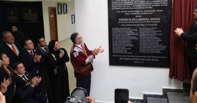 Tras la ceremonia protocolaria, el gobernador Américo Villarreal Anaya y la presidenta del Congreso, Úrsula Patricia Salazar se trasladaron a las escalinatas, donde se procedió a la develación de la placa.