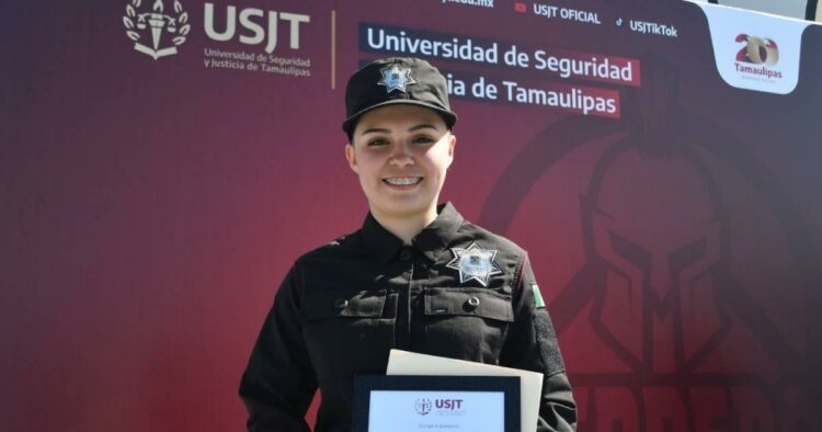 Ciudad Victoria, Tamaulipas. – Con tan solo 19 años, Giselth Daniela Robledo De la Rosa obtuvo el primer lugar en el Curso de Formación Inicial de la Guardia Estatal, logro que fue reconocido por la Secretaría de Seguridad Pública de Tamaulipas (SSPT).