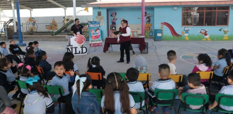 Nuevo Laredo, Tamaulipas.- Los alumnos del Jardín de Niños “Octavio Paz” recibieron la visita del programa municipal “Biblioteca Itinerante” con el que se les leyó un divertido cuento y se les compartió la importancia de leer, cuidar y valorar los libros.