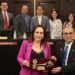 Al tradicional evento acudieron las diputadas federales, Yeidckol Polevnsky y Ana Laura Huerta Valdovinos, así como el rector de la Universidad Autónoma de Tamaulipas, Dámaso Anaya Alvarado.