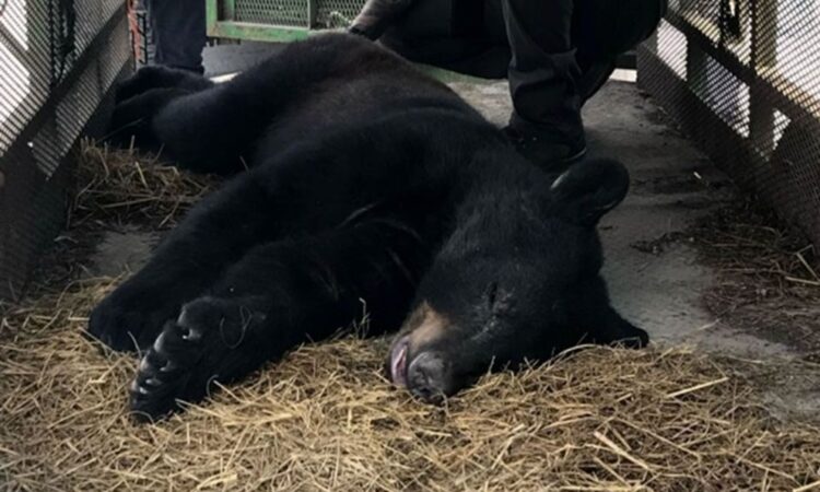 Luego del rescate del oso negro de un peso de 60 kilos y 80 centímetros de altura, se procedió a estabilizarlo para colocarle un chip así como un arete de identificación y regresarlo a su hábitat natural.