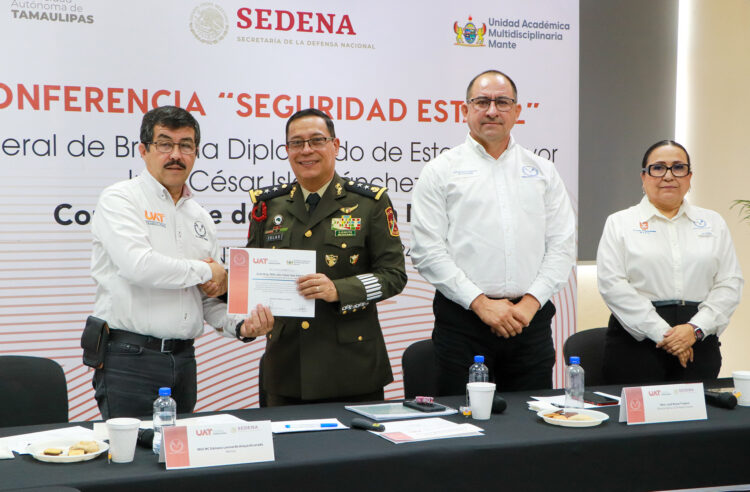 La Universidad Autónoma de Tamaulipas (UAT) organizó una conferencia sobre las funciones y el desempeño de la Secretaría de la Defensa Nacional (SEDENA), en el marco de la Reunión de Seguridad que se realizó en la Unidad Académica Multidisciplinaria Mante.