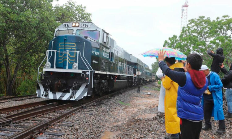 Por la mañana, Sheinbaum y López Obrador se reunieron en privado en la refinería de Minatitlán; luego viajaron a Jáltipan y abordaron aquí el tren de pasajeros, que aún opera con una sola vía y forma parte del Corredor Interoceánico con 10 parques industriales en proyecto.