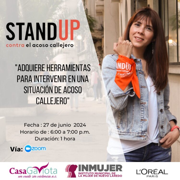 (INMUJER), invita a las neolaredenses a participar en en el curso “Stand Up: Adquiere herramientas para intervenir en una situación de acoso callejero” que tiene el fin de promover un entorno sano a las