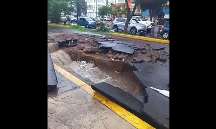 Por segundo día consecutivo, una intensa lluvia azoto las zonas sur y norte de Morelia, donde se registran afectaciones diversas, entre esas, la apertura de un socavón.