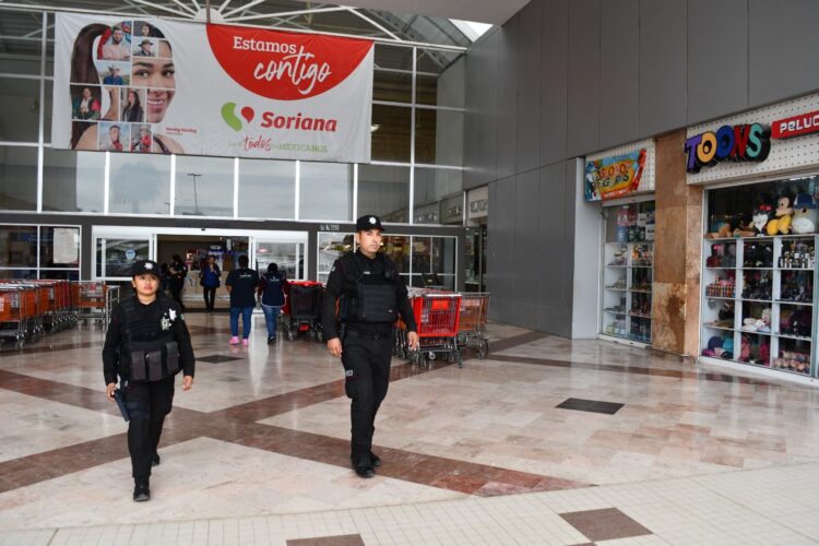 Debido a la alta afluencia de compradores, elementos de esta corporación realizan recorridos de seguridad y vigilancia en diferentes plazas y zonas comerciales.
