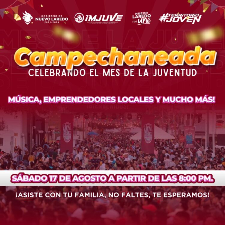 Nuevo Laredo, Tamaulipas.- El Instituto Municipal para el Desarrollo de la Juventud (IMJUVE), invita a la ciudadanía a disfrutar de la Campechaneada celebrando el Día Internacional de la Juventud.