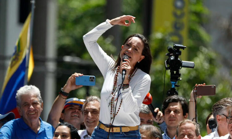 La dirigente opositora venezolana María Corina Machado ha denunciado este miércoles el «fraude» electoral perpetrado hace un mes por el Gobierno de Nicolás Maduro, un «robo» que ha llamado a combatir con movilizaciones y el apoyo de la comunidad internacional durante una concentración en Caracas que han secundado miles de personas.