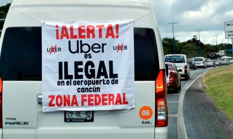 «Uber es ilegal en el Aeropuerto de Cancún, es Zona Federal», anotaron en sus vehículos.