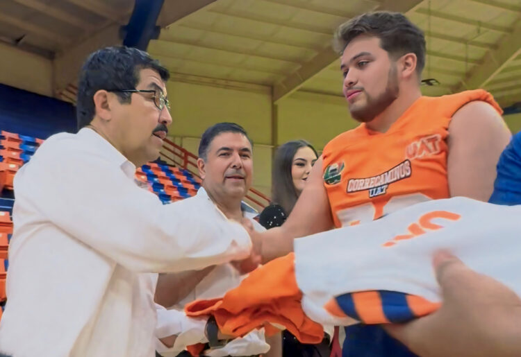 Al entregar el equipamiento a los jugadores, staff y cuerpo técnico, Dámaso Anaya celebró que, luego de algunos años, el Correcaminos regrese a jugar a la mejor liga de futbol americano del país a nivel universitario.