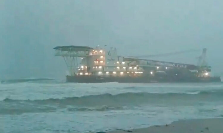 Una embarcación encalló este sábado en las costas de Coatzacoalcos, Veracruz, debido a las lluvias y vientos ocasionados por el Frente Frío 1 en combinación con la Onda Tropical 21.
