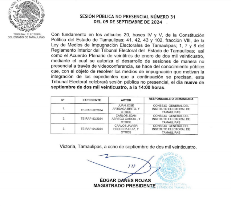 Los tres casos considerados resolver este día, contienen los expedientes: TE-RAP-52/2024, TE-RAP-53/2024, y TE-RAP-54/2024, y todos demandan al Consejo General del Instituto Electoral de Tamaulipas.