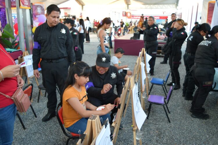 Entre las actividades a cargo de la Guardia Estatal de Género, se encuentran pintacaritas, juegos como tiro al blanco, fotografías con las botargas oficiales de la SSPT y entrega de trípticos para prevenir la violencia familiar.