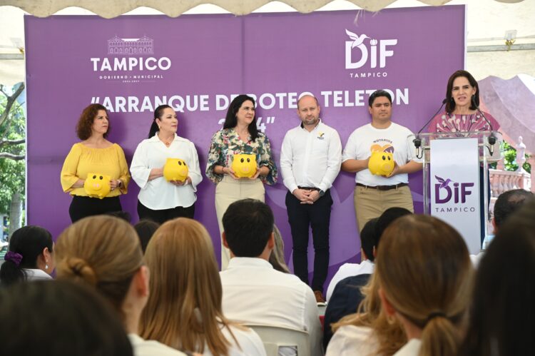 Tampico, Tamaulipas.- Con el objetivo de apoyar a las niñas, niños y jóvenes con discapacidad, cáncer o autismo, el Gobierno Municipal que encabeza la Presidenta, Mónica Villarreal Anaya y el Sistema DIF Tampico, que preside, Luz Adriana Villarreal Anaya, pusieron en marcha la Campaña de Boteo Teletón 2024, contando con la presencia del Director general del CRIT Tamaulipas, Baldomero López Zamora.