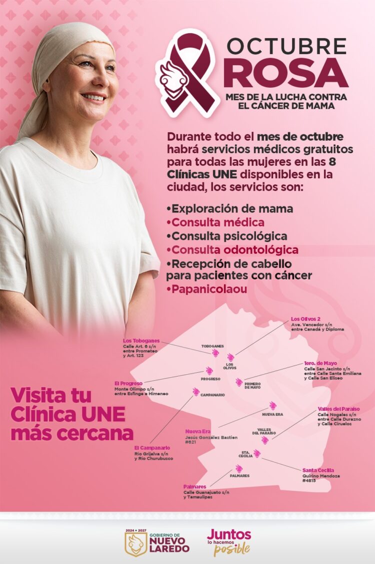 Nuevo Laredo, Tamaulipas.- El Gobierno Municipal a través de la Secretaría de Bienestar Social, lleva a cabo una amplia jornada de salud como parte de la campaña “Octubre Rosa, mes de la lucha contra el cáncer de mama”.