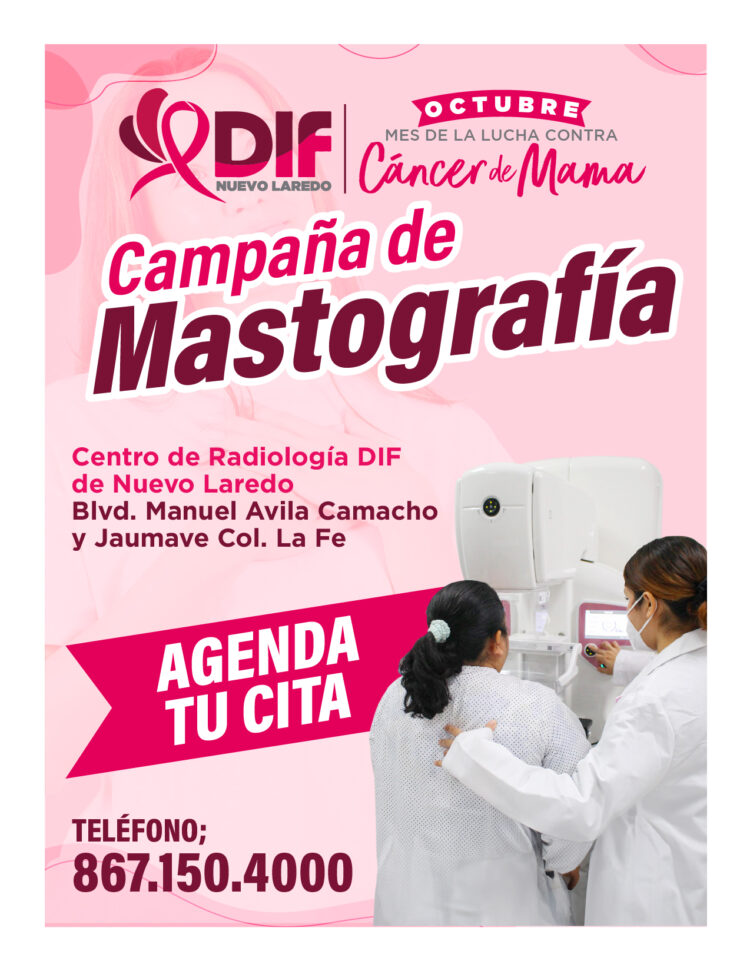 Nuevo Laredo, Tamaulipas.- En el marco del Mes de la Concientización sobre el Cáncer de Mama, el Sistema DIF Nuevo Laredo realiza la Campaña de Mastografías Gratuitas para personas en situación vulnerable.